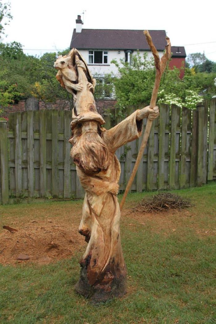 On se demande si nous aussi on arriverait à réaliser la moindre sculpture avec un outil comme une tronçonneuse.